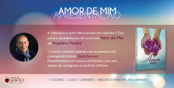 «AMOR DE MIM» é o novo livro de poemas e prosa poética de Angelino Pereira que vai ser apresentado dia 7 de outubro de 2016 pelas 21h30 na Biblioteca Municipal Raul Brandão, em Guimarães. De salientar a presença e atuação da consagrada fadista Paula Barroso para uma noite especial de festa. No final haverá ainda espaço para autógrafos e será servido um Porto d'Honra.