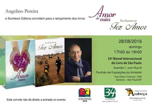 O mais recente livro de poemas e prosa poética, “Amor de Mim”, e o romance “Na Guerra se Fez Amor” serão apresentados em São Paulo, na 24.ª Bienal Internacional do livro daquela cidade. A apresentação, em parceria com a Scortecci Editora, realiza-se no dia 28 de agosto, às 17h.